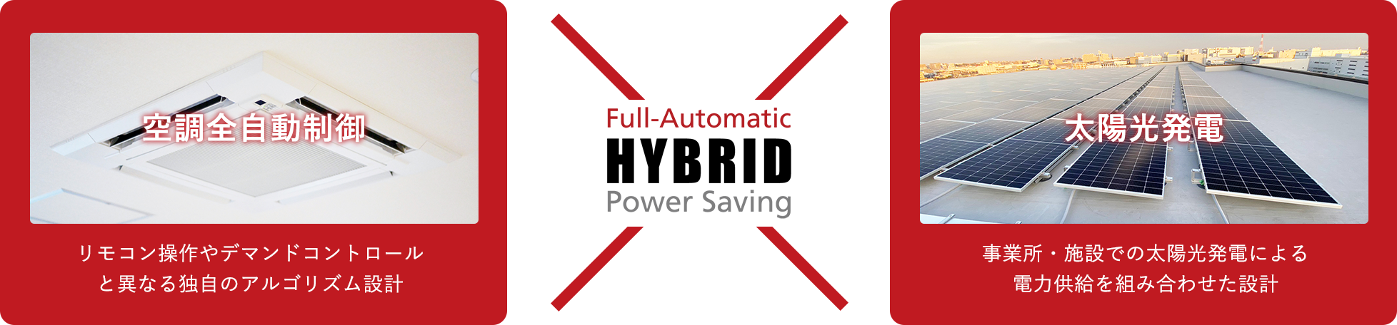 全自動制御による空調制御と太陽光発電のふたつのシステムによるハイブリッド効果で